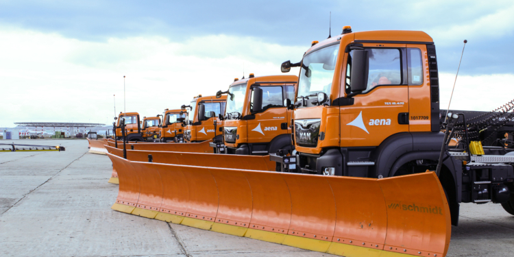 Los aeropuertos de la red de Aena cuentan con medios propios y medios contratados a empresas externas para la retirada de la nieve y el hielo.