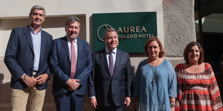 El presidente de la Junta de Castilla-La Mancha, Emiliano García-Page, el alcalde de Toledo, Carlos Velázquez, y la presidenta de la Diputación de Castilla- La Mancha, Conchi Cedillo, han visitado las instalaciones del Áurea Toledo 4*, el nuevo proyecto de Eurostars Hotel Company, cadena hotelera de Grupo Hotusa.