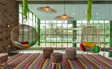 Holiday World Riwo Hotel es un concepto de hotel totalmente novedoso donde tienen protagonismo la experiencia del cliente a través del agua, la aventura y la diversión. El hotel se ha transformado en un lugar exótico, inspirado en paisajes salvajes, siguiendo además una línea sostenible en la que se utilizan materiales y elementos naturales.
