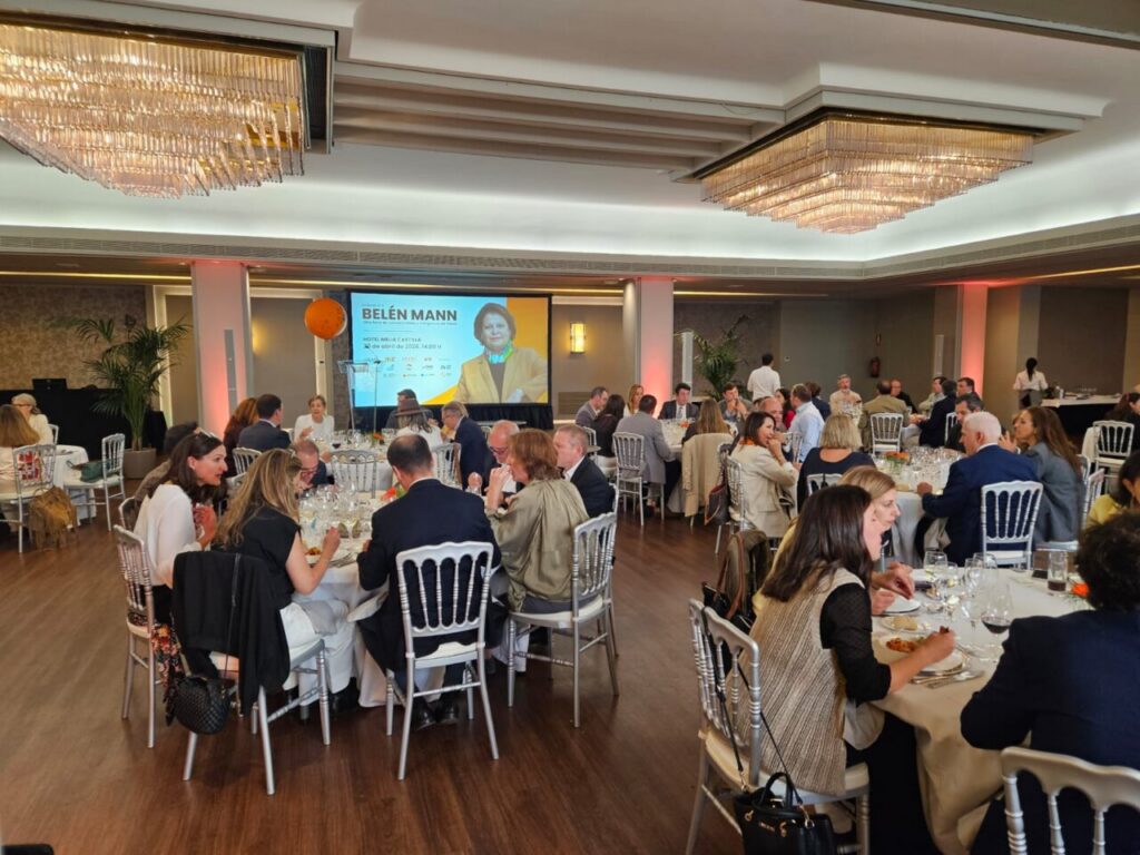 La jornada arrancó con un aperitivo de recepción, tras el cual, en torno a las 14:40 horas, dio comienzo el almuerzo institucional. Durante el evento se realizó una breve presentación desde el escenario para contextualizar el homenaje y reconocer la trayectoria profesional de Belén Mann dentro del sector.