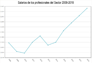 Es el quinto incremento consecutivo. Tras experimentar en 2013 una caída interanual del 2,8%, en 2014 se inició una tendencia positiva, con un tímido aumento del 0,9%. Un año más tarde, en 2015, se produjo el mayor repunte de este quinquenio, con una tasa anual del 3,6%, mientras que en 2016 los salarios volvieron a repuntar un 2,3%. El crecimiento de 2017 es idéntico al de este último 2018 (+2,1%).