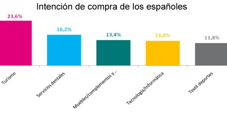 Por canales, el Turismo también se mantiene en cabeza en el comercio electrónico con un peso del 14%, muy por encima del resto de sectores. Por detrás aparece tecnología e informática con el 5,8%. En cambio, en los medios de distribución offline aparece en tercer lugar, con un porcentaje del 9,6%. Se ve superado por servicios dentales y muebles y complementos.