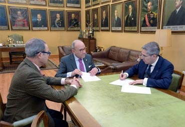 A la firma del acuerdo, celebrada en la sala de Juntas del Círculo, han asistido Juan Salado, adjudicatario del Palacio de Congresos, y Pedro López Castillejo, presidente de la entidad.