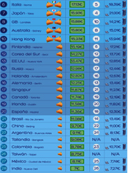 De este modo, el precio medio del CSI ha sido calculado tomando precios reales pagados por los huéspedes alojados en 30 hoteles de las capitales y ciudades más relevantes de cada país. En total, Hoteles.com valoró el precio de 840 hoteles de cinco, cuatro y tres estrellas en más de 25 países.