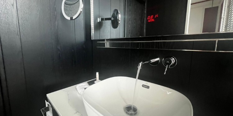 Actualmente, los 65 baños del hotel cuentan con un sistema avanzado de contadores inteligentes de agua. Estos dispositivos, se activan automáticamente al abrir el grifo, iluminan una señal roja y muestran en tiempo real los litros de agua consumidos por el huésped. Esta funcionalidad permite a los usuarios visualizar y reflexionar sobre su uso de agua, fomentando pequeñas acciones que pueden generar un gran impacto, como cerrar el grifo mientras se cepillan los dientes, utilizar el pulsador de la cisterna de media carga o darse duchas más cortas.