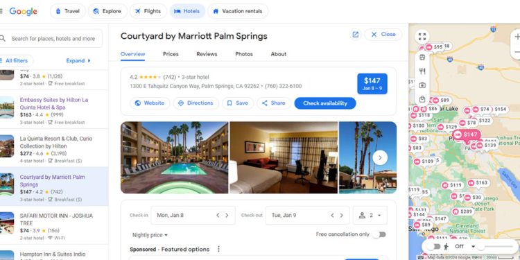 Según un reciente estudio de distribución de Hotrec, como metabuscador de hoteles, Google pasó de ser utilizado por el 37% de los hoteles en 2013 al 80% en 2023 gracias principalmente a la visibilidad gratuita que obtuvieron en la sección de hoteles de Google. En cambios, otros intermediarios hoteleros están perdiendo terreno frente a Google año tras año.
