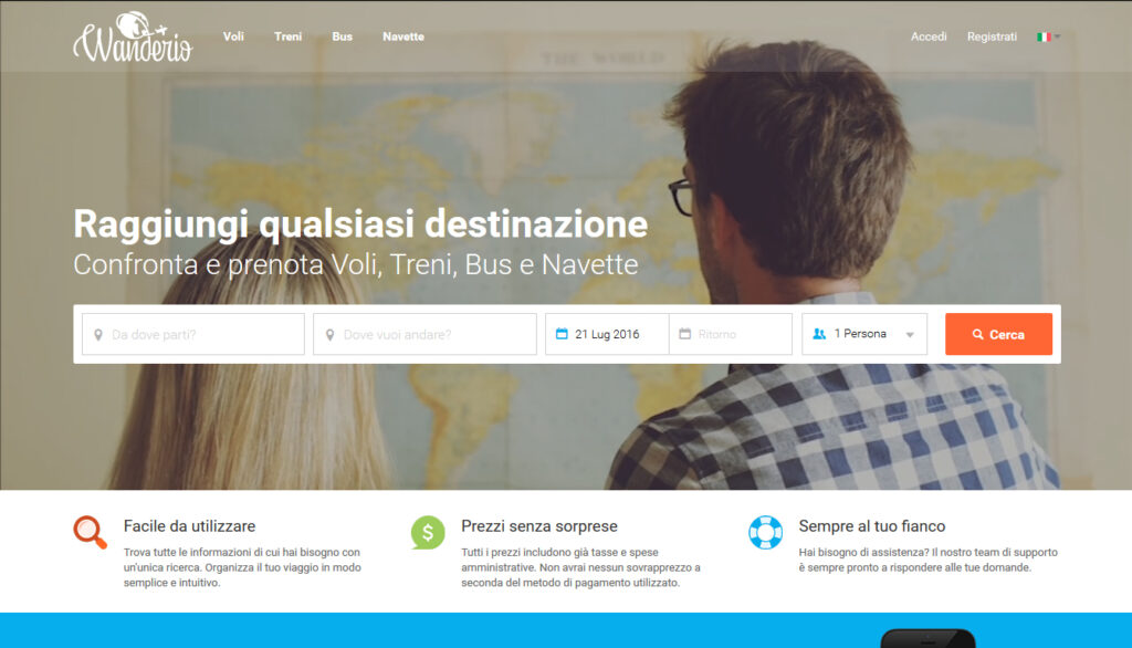Wanderio, startup italiana fundada en 2013, permite a sus clientes comparar, reservar y pagar los viajes de avión, tren, autobús de larga distancia, traslados al aeropuerto, y próximamente, alquiler de coches. Con más de un millón de viajes programados hasta la fecha, la plataforma establece conexiones con más de 700 aeropuertos y más de 4.000 estaciones de tren y autobús. La inversión de Europcar supondrá una ayuda valiosa para consolidar y ampliar la cobertura de Wanderio en Europa.