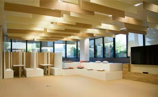 Por último, la zona Open Space es de uso libre para actividades colectivas o individuales, dispone de pantalla gigante que puede usarse tanto para presentaciones como en momentos de esparcimiento y recreo de los empleados, un monitor profesional Bravia® Full HD en color de 75 pulgadas con una retroiluminación LED que consume menos energía que el sistema tradicional de retroiluminación fluorescente, una consola X-Box multimedia, mesas con bancos y grada. En un próximo futuro, la idea es que el Open Space sea un punto de encuentro para empleados que quieran hacer un descanso en su jornada participando en alguna de las conferencias que se programarán.