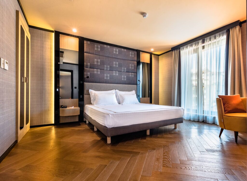 Sus instalaciones albergan 61 habitaciones con modernas dotaciones, cuidado interiorismo y materiales de gran calidad, diseñadas por el estudio italiano Claudio Bronzini. Destaca entre ellas una suite de lujo con fantásticas panorámicas sobre la ciudad. El establecimiento ofrece un amplio abanico de servicios que contemplan, lobby bar, sala de masajes, sauna y peluquería. Asimismo, sus 4 salones con capacidades entre 60 y 120 pax, y su terraza-jardín exterior, unidos a la privilegiada ubicación del hotel, lo convierten en destino ideal para la celebración de encuentros profesionales y bodas o eventos sociales de la más diversa índole.