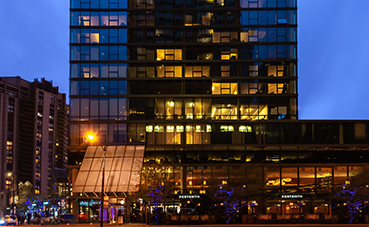 El hotel, incorporado en régimen de arrendamiento, dispone de una terraza ubicada en la planta 26. Se trata de un auténtico mirador, cuya decoración lo convierte en un oasis urbano, con multitud de elementos vegetales y coloridos detalles que crean una atmósfera distendida y agradable. Este espacio, complementado por los más de 350 metros cuadrados de salones que dispone el establecimiento, convierten al Eurostars Magnificent Mile en el enclave en el que celebrar eventos de la más diversa índole. Además, sus instalaciones disponen también de business centre, gimnasio, un spa con una amplia oferta de tratamientos médico- estéticos, parking y un restaurante que ofrece recetas tradicionales de los puertos americanos elaboradas con las técnicas más innovadoras.