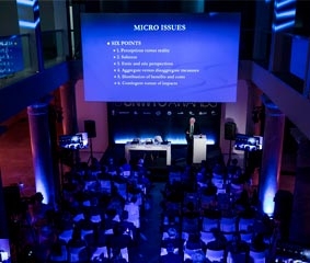 Con escasas cuatro horas de diferencia entre ambos eventos celebrados el mismo día, el equipo de Eventisimo realizó un cambio de montaje y elementos escenográficos, para cambiar el formato teatro de la presentación internacional a un montaje de cena de gala para los cerca de 400 invitados que asistieron.