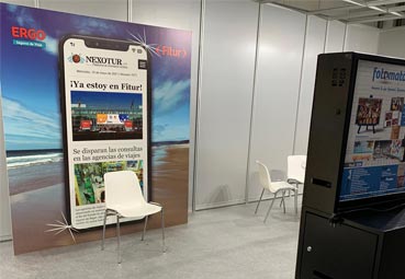 El ‘photocall’ representaba un teléfono móvil gigante, que mostraba la versión mobile responsive del diario digital de NEXOTUR.com con el titular «¡Ya estoy en FITUR!». De esta manera, los agentes y profesionales que pasaron por el stand del digital decano de la Prensa turística española, pudieron comunicar a sus contactos su presencia en la feria. Además de la fotografía impresa, que recibió cada uno de los agentes y profesionales que participaron en la iniciativa conjunta de ERGO y NEXOTUR.com.