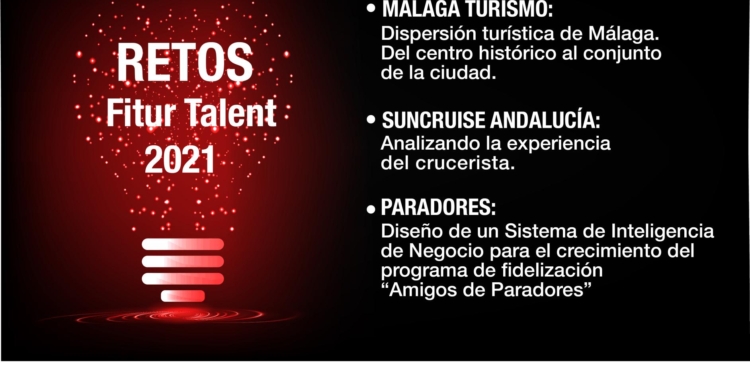 Fitur Talent, el espacio monográfico de Fitur que pone el acento en las personas, sus habilidades y capacitación profesional, incorpora en su segunda edición, una novedosa acción orientada a promover el talento mediante la búsqueda de soluciones a tres retos en innovación turística propuestos por Paradores, Málaga Turismo y Suncruise Andalucía. La convocatoria, puesta en marcha en colaboración con Tourism Data Driven Solutions (TDDS), está dirigida a estudiantes de último año de Grado, posgrado o Máster de Universidades, Centros de Investigación y Escuelas de Negocio y se valorará especialmente la configuración de grupos multidisciplinares.