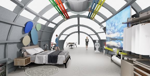 El diseño del espacio #techYhotel corresponde al arquitecto e interiorista Miguel Soler, especialista en hoteles y en la creación de espacios temáticos únicos, y recreado por GEODOMOS, expertos en construcción sostenible inteligente.