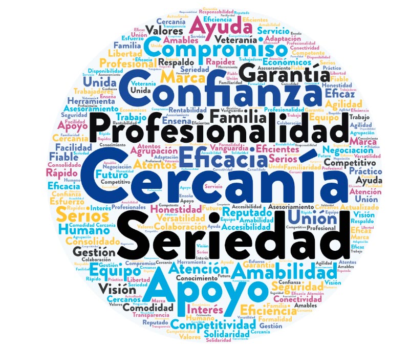 Ante la pregunta, si tuvieras que definir a Grupo GEA con tres palabras, tres ideas que definan lo que es, lo que representa: ¿cuáles serían esas palabras?, las respuestas empiezan a subir en un goteo continuo. La encuesta lanzada por AdLátere para evaluar el grado de satisfacción de las agencias asociadas al Grupo ha dado resultados muy claros. Tras una alta y rápida participación y tras tratar de forma estadística las respuestas, el informe llega a dirección general con una nube de palabras como resumen. Que nos perciban como cercanos, serios, profesionales y de confianza ha sido una grata noticia para todo el equipo humano de GEA, dice la directora general, Sara Fernández.