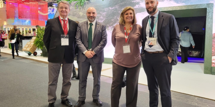 En el anuncio realizado en la Feria Internacional de Turismo 2023 (Fitur) se han dado cita el concejal de Turismo de Gijón, Santos Tejón, el director de Visita Gijón, Daniel Martínez, la presidenta de SpainDMCs, Fay Taylor, y el director ejecutivo de la asociación, Luis Díaz.