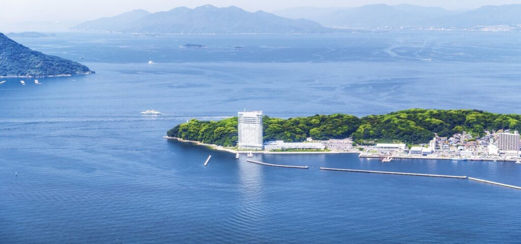 La llegada al Grand Prince solo es posible por vía marítima, a través del mar interior de Seto; o por vía terrestre, gracias a una carretera que lo conecta con la ciudad de Hiroshima, de la que se encuentra a unos 15 minutos en coche.
