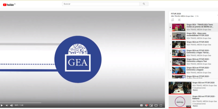 En el canal de YouTube de Grupo GEA se puede acceder a dos listas de reproducción. En la playlist de FITUR podemos disfrutar de las últimas novedades de los diferentes socios comerciales del Grupo. Es uno de los objetivos con los que nació la productora, la de informar de forma directa, cuenta Fernández. La productora ha tenido el gusto de realizar entrevistas sobre la situación actual de diferentes marcas como Aegean, Iberia, Royal Air Maroc, NCL, Fred Olsen, Luxotour, Air Europa, España Visión, EuroWelcome, Tierras Polares y Alayca Tours, entre otros.