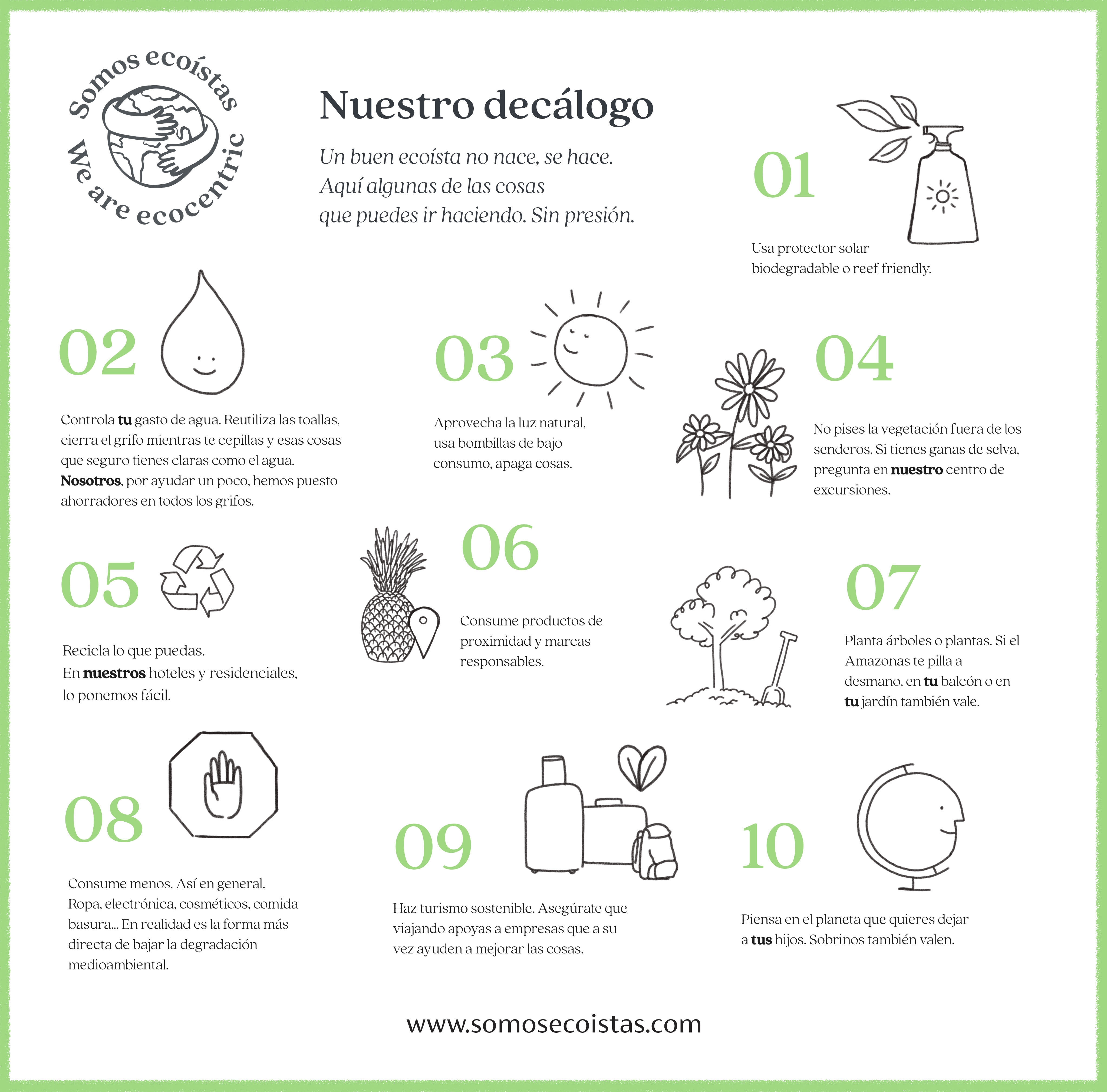 Por este motivo, Grupo Piñero, compañía turística española con más de 40 años de historia, ha creado en el marco de su movimiento ‘Somos Ecoístas’ (www.somosecoistas.com) un decálogo de diez recomendaciones que podemos adoptar individualmente en las vacaciones para conservar el planeta.