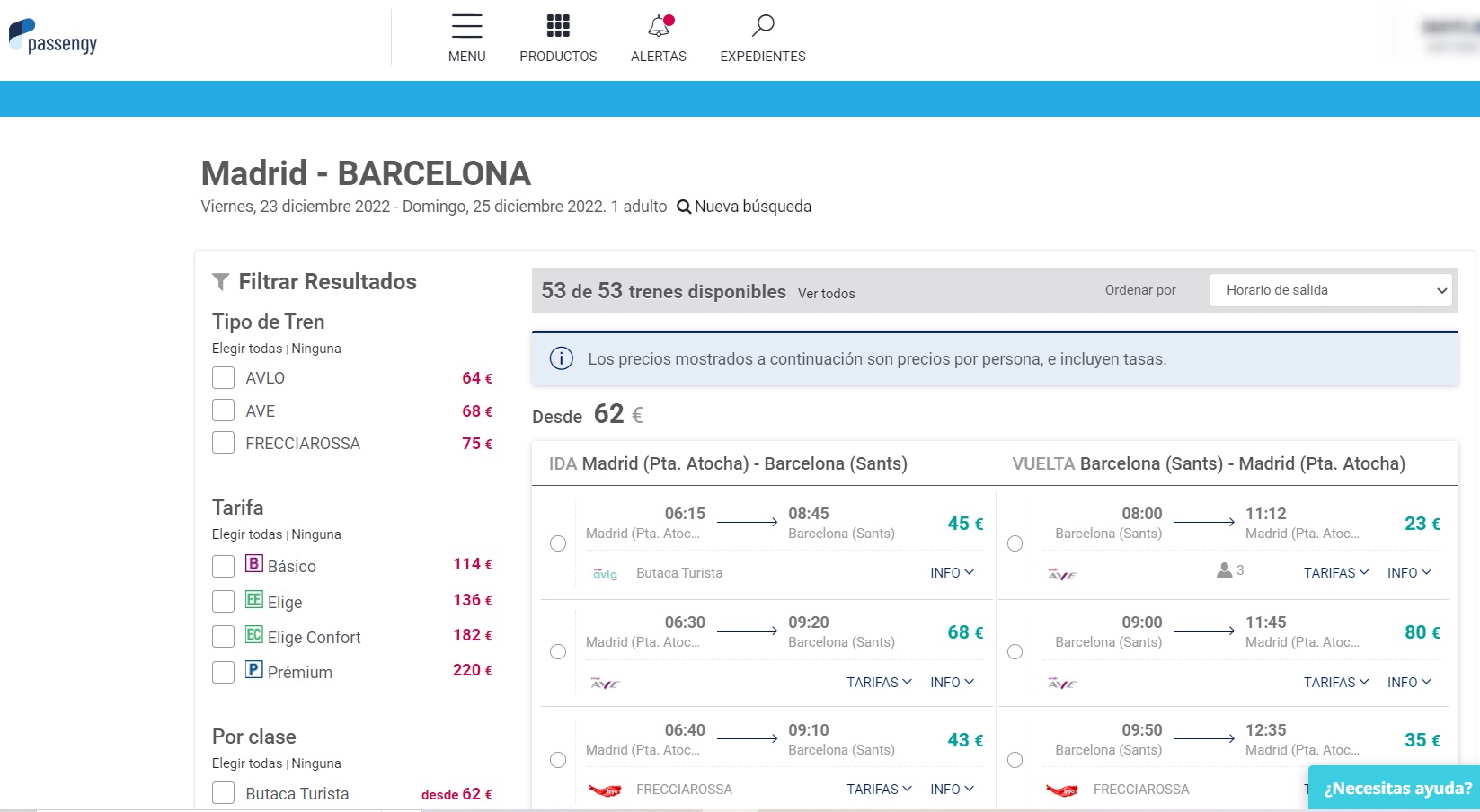 El buscador ofrece reservas en Avlo, Ave e Iryo. Además, a través de Passengy, Grupo Viajes El Corte Inglés ofrece trenes a nivel europeo en Francia, Bélgica, Holanda, Luxemburgo, Reino Unido y próximamente en Italia y Alemania.