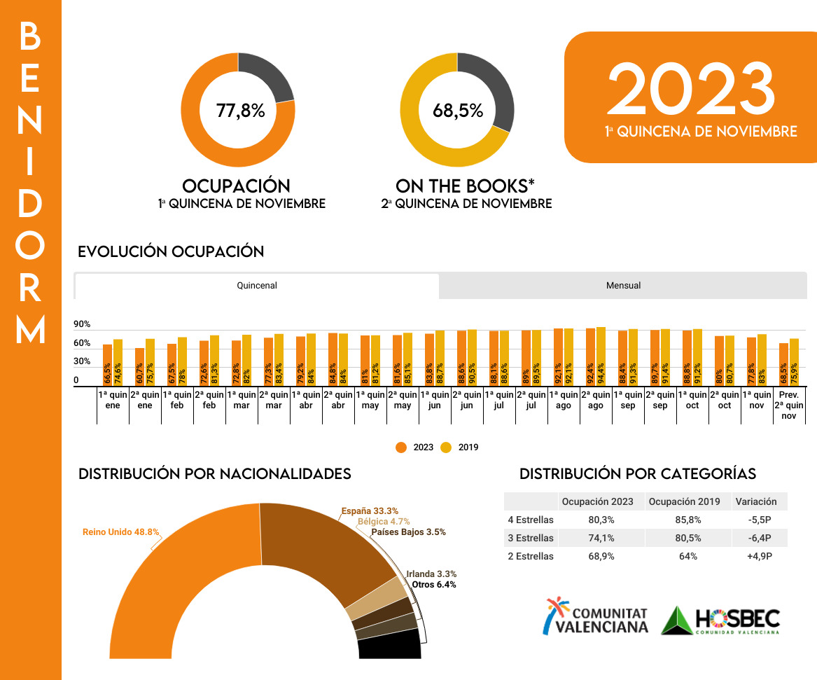 Así, los últimos quince días de noviembre los hoteles del destino Benidorm ya cuentan con un volumen de reservas del 68,5% y, tal y como adelanta Hosbec, esperan elevar la cuota con las reservas de los primeros turistas del programa Imserso.