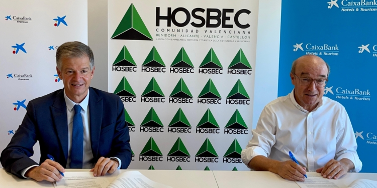 El acuerdo ha sido suscrito por el presidente de Hosbec, Antonio Mayor, y el director territorial de CaixaBank en la Comunitat Valenciana, Xicu Costa. La firma ha tenido lugar en la sede de Hosbec en Benidorm, edificio de Instituto Valenciano de Tecnologías Turísticas (INVAT.TUR). El convenio de colaboración prevé ventajas para los socios en la gestión de sus cuentas, tarjetas, transferencias y financiación.