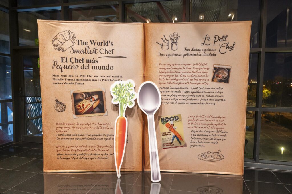 Se trata de toda una aventura gastronómica en forma de animación, en la que los comensales pueden observar a través de una proyección tridimensional en la propia mesa cómo un mini chef prepara los platos de una forma creativa antes de servirla, para que la espera sea más divertida. De este modo, a través de este espectáculo inmersivo e interactivo donde se puede ver, oír y degustar, los huéspedes y visitantes se sienten involucrados en todo el proceso de preparación de los platos para vivir toda una experiencia multisensorial con los cinco sentidos.