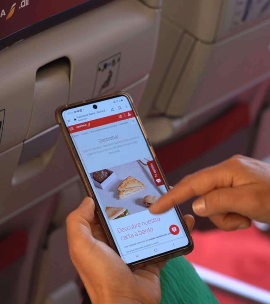 A través de esta plataforma, el cliente puede conocer el menú ofrecido a bordo, la carta del servicio de Gastrobar, informarse sobre el sistema de entretenimiento, descargarse la prensa digital o consultar cómo adquirir los paquetes wifi para navegar por Internet una vez a bordo. También puede consultar la última hora de sus vuelos, comprobar la puerta de embarque asignada en su vuelo de conexión, o gestionar sus reservas en caso de incidencia.