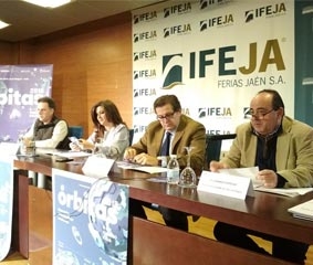 En la presentación de Órbitas, que ha tenido lugar en la Sala Jándula del Palacio de Congresos de Jaén, han participado Yolanda Caballero, delegada de Educación; Luis Jesús García-Lomas, gerente de la Fundación Caja Rural; Tiburcio E. Biedma, director del Centro del Profesorado de Jaén, y Leonardo Fontecha, director de la Escuela de Arte José Nogué.