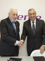 El acuerdo ha sido firmado por el presidente ejecutivo de Ifema, Luis Eduardo Cortés, y por el presidente de Renfe, Julio Gómez-Pomar Rodríguez, acompañados en el acto por el director general de Ifema, Fermín Lucas.