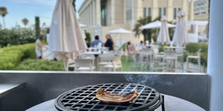 A partir de las 21:00h, los clientes que no se hospedan en el hotel también podrán acceder al establecimiento, momento en el que dará inicio el servicio de barbacoa en vivo. La carta del menú rinde homenaje a la simplicidad, ofreciendo jamón ibérico de bellota, quesos artesanales, tomates perfectamente maduros, coca de aceite y pinsa romana, entre otros platos.