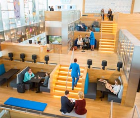La Sala VIP Crown para pasajeros no Schengen de KLM se encuentra entre los muelles E y F del aeropuerto de Schiphol. «La sala abarca actualmente un área de 6.800 metros cuadrados con unos 1.000 asientos totalmente gratuitos», señala Eelco van Asch, vicepresidente sénior de Servicios en Tierra de KLM. «Además, existen unos 200 asientos exclusivos en el bar y el restaurante Blue con unos niveles de servicio igualmente exclusivos. Allí, los clientes pueden pagar con sus millas Flying Blue. Al duplicar la capacidad, KLM tiene en cuenta nuestras previsiones de aumento del número de visitantes. Esto representa un gran hito. Ofrecemos a nuestros clientes y a los clientes de nuestras aerolíneas asociadas una experiencia inolvidable, un logro decisivo en nuestro centenario», añade.