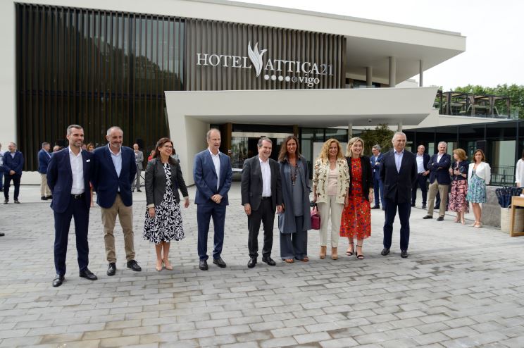 El alcalde de Vigo, Abel Caballero, presidió el acto de apertura oficial junto a Manuel Ángel y Felipa Jove, co-presidentes de Inveravante; Jaime de Lacalle, CEO de Inveravante; José Cajide, director de la cadena Attica21 Hotels y Daniele Provezza, director del Attica21 Vigo.