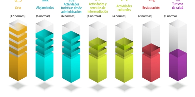 Estos estándares se elaboran en los comités técnicos de normalización (CTN) de UNE, y son fruto del consenso de todas las partes implicadas. Bajo el impulso del Instituto para la Calidad Turística Española (ICTE), que gestiona desde hace 15 años la secretaría de una decena de CTN, se han desarrollado normas clave en materia de calidad turística, como la UNE 182001 para hoteles o la UNE 302002 de museos, detalla el informe. Además, muchas han constituido la base para elaborar estándares internacionales, como la Norma UNE-ISO 13009 sobre playas, exportando de este modo la experiencia y conocimiento españoles en todo el mundo.