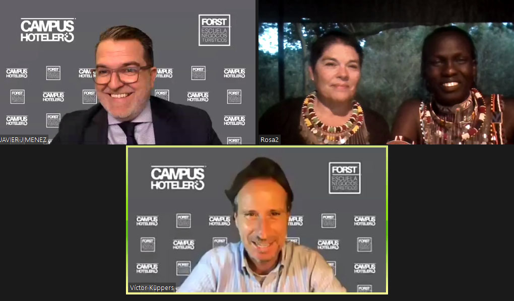 La sesión de clausura del Campus Hotelero comenzó con una conexión en directo con el proyecto solidario al que va dirigida la recaudación de la iniciativa. Aunque inscribirse era gratuito para personas en ERTE o desempleados, para trabajadores en activo, tenía un coste de 100. Toda la cantidad recaudada se ha entregado íntegramente a la asociación ADCAM, que gestiona el único hotel solidario en la reserva natural del Masai Mara en Kenya.