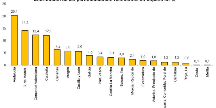 La Comunidad de Madrid es la preferida de los residentes españoles, mientras que Canarias es la de los no residentes