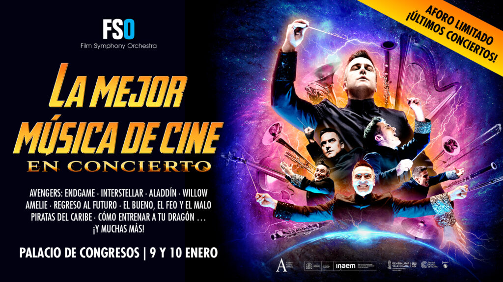 La Film Symphony Orchestra (FSO) regresa los días 9 y 10 de enero de 2021 al Palacio de Congresos de Valencia con un repertorio que incluirá las bandas sonoras de Los Vengadores, Interstellar, Willow, Aladín, Regreso al Futuro, Piratas del Caribe o El bueno, el Feo y el Malo.
