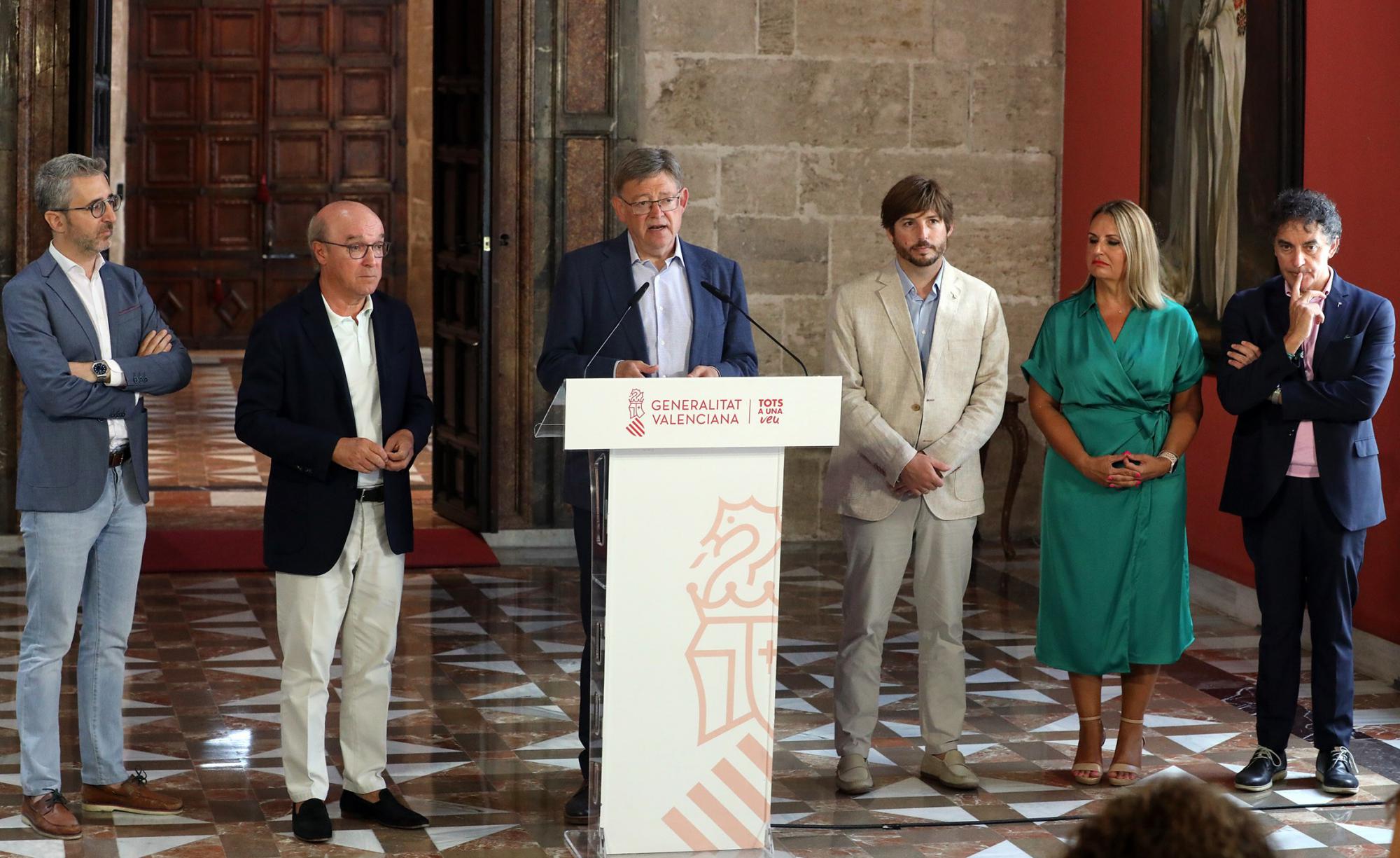 El presidente, acompañado del consejero de Hacienda, Arcadi España, han cerrado este acuerdo en una reunión en el Palau con el presidente de la Asociación Empresarial Hotelera y Turística de la Comunitat Valenciana (Hosbec), Toni Mayor, y representantes de la patronal hotelera.