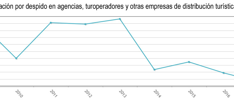 Las indemnizaciones por despido aumentan de forma significativa en agencias de viajes, turoperdores y otras empresas de distribución turística. Según el INE, en el año 2018 ascendieron de media a 251 euros por trabajador, cantidad en la que se incluye el total de los pagos efectuados por despido y extinción del contrato, así como los salarios dejados de percibir en el transcurso de la tramitación del despido que el empleador debe abonar en esta situación (salarios de tramitación).