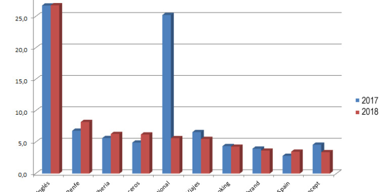 B the travel brand, por su parte, ha invertido 3,7 millones de euros, un 7,5% menos que en 2017, cuando destinó cuatro millones. En cuarto lugar figura Halcón Viajes. La marca de Globalia ha desembolsado 2,3 millones, un 11,5% menos que los 2,6 millones del ejercicio anterior.