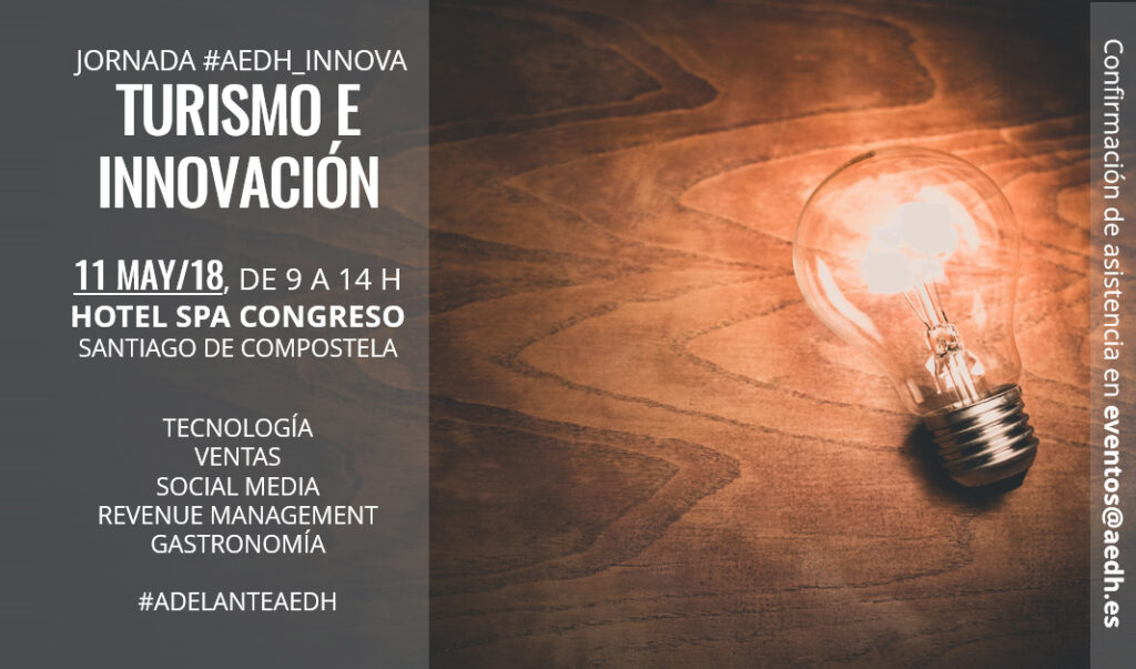AEDH continúa apostando por la innovación continua y la aportación de nuevas ideas, enfoques, aplicaciones y tendencias del sector turístico y Hotelero. Por esto, organiza la Jornada #AEDH_Innova, que tendrá una duración de cinco horas, que abarcará desde las 9:00 hasta las 14:00.