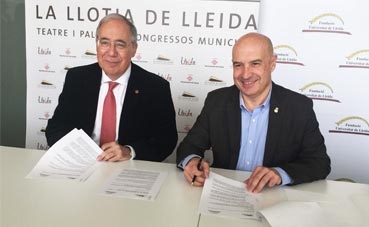 El Palacio de Congresos La Llotja de Lleida acogerá durante los próximos dos años diferentes eventos relacionados con la promoción, organización y realización de congresos que impulse la Fundación de la Universidad de Lleida (UdL). Así lo establece el convenio de colaboración que han firmado el teniente de alcalde y presidente del Consejo de Administración del Centro de Negocios y Convenciones (CNC; La Llotja), Rafael Peris, y el rector de la UdL, Roberto Fernández.