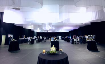 La Nube de Pastrana, que cuenta con una capacidad para acoger a 900 personas sentadas o hasta 1.200 de pie, es obra del estudio de arquitectura Vicens + Ramos. En él, destacan los 600 metros de tela que permiten convertir el techo del Pabellón Polivalente del Complejo en un cielo exclusivo personalizado a la medida de cada cliente.