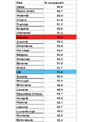 Nuestro país se sitúa también por encima de estados como Noruega, Grecia o Portugal, pero queda por debajo de otros como Francia, Alemania y Malta, que fue el país que registró la mejor marca de ocupación con una media del 65,6% entre enero y septiembre del 2012.