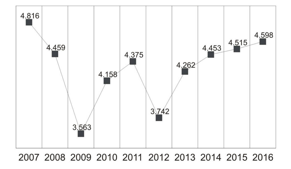 Un año antes el crecimiento fue del 4,5%, alcanzándose la cifra de 4.453 millones, mientras que el mayor repunte de los últimos cuatro años se produjo en 2013 (+13,9%), ejercicio en el que el volumen se situó en 4.262 millones.