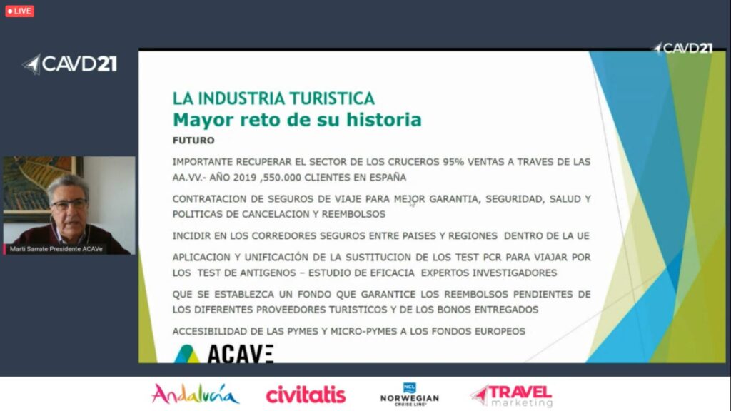 En el día de ayer tuvo lugar el 2º Congreso Agente Viajes Digital 2021, organizado por Travel Marketing, donde se puso en valor que la unión del Sector Turístico es y será un elemento primordial para la recuperación de las agencias de viajes durante y después de la crisis del Covid-19. El presidente de la Asociación Corporativa de Agencias de Viajes Especializadas (ACAVE), Martí Sarrate, ha destacado que «unidos somos mas fuertes y tenemos que empujar en la misma dirección para que nos hagan caso y poder salvar al Sector».