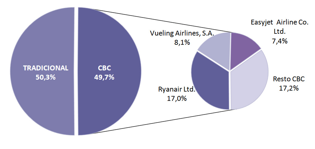 Ryanair, Easyjet y Vueling acaparan el 67% de los pasajeros en aerolíneas low cost