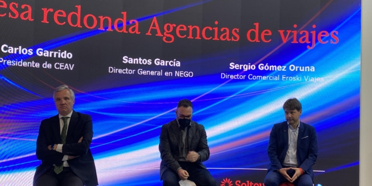 Fiel a la apuesta Soltour Travel Partners por ayudar y apoyar al sector de las agencias de viajes, la sesión la ha cerrado una mesa redonda fundamental en la que han participado relevantes protagonistas de este sector: Carlos Garrido, presidente de CEAV, Santos García, director general en Nego y Sergio Gómez, director comercial de Eroski Viajes. Todos ellos moderados por Tomeu Bennasar, CEO de Soltour Travel Partners.