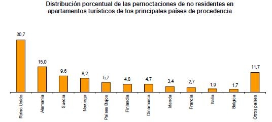 Los principales mercados emisores en alojamientos turísticos reglados son el británico, el alemán y el francés