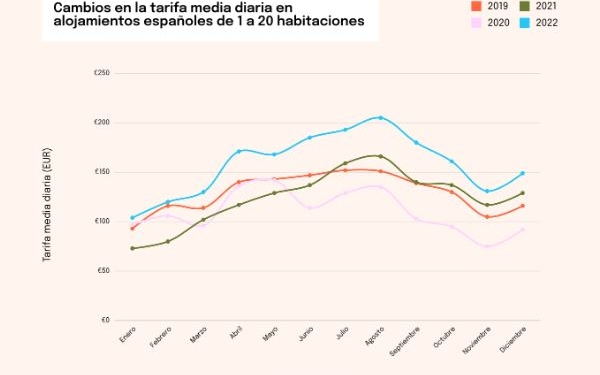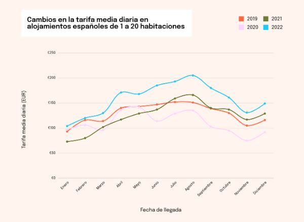 Este incremento se ha debido al interés de los clientes por reservar este tipo de alojamientos, así como por la inflación. Si se hace una comparativa de este último año con 2019, las habitaciones de los alojamientos pequeños (de entre 1-20 habitaciones) son un 22% más caras, mientras que el incremento medio en España es del 12%.